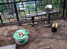 Далее мы приварили к нижней части оградки металлические полосы, которые и послужат бортами для будущего наземного покрытия из гранитной брусчатки.