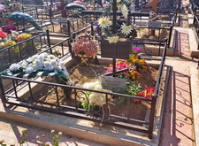 Когда памятник был изготовлен, идём на место захоронения. На данный момент на могиле находится лишь холмик, на котором растут цветы.